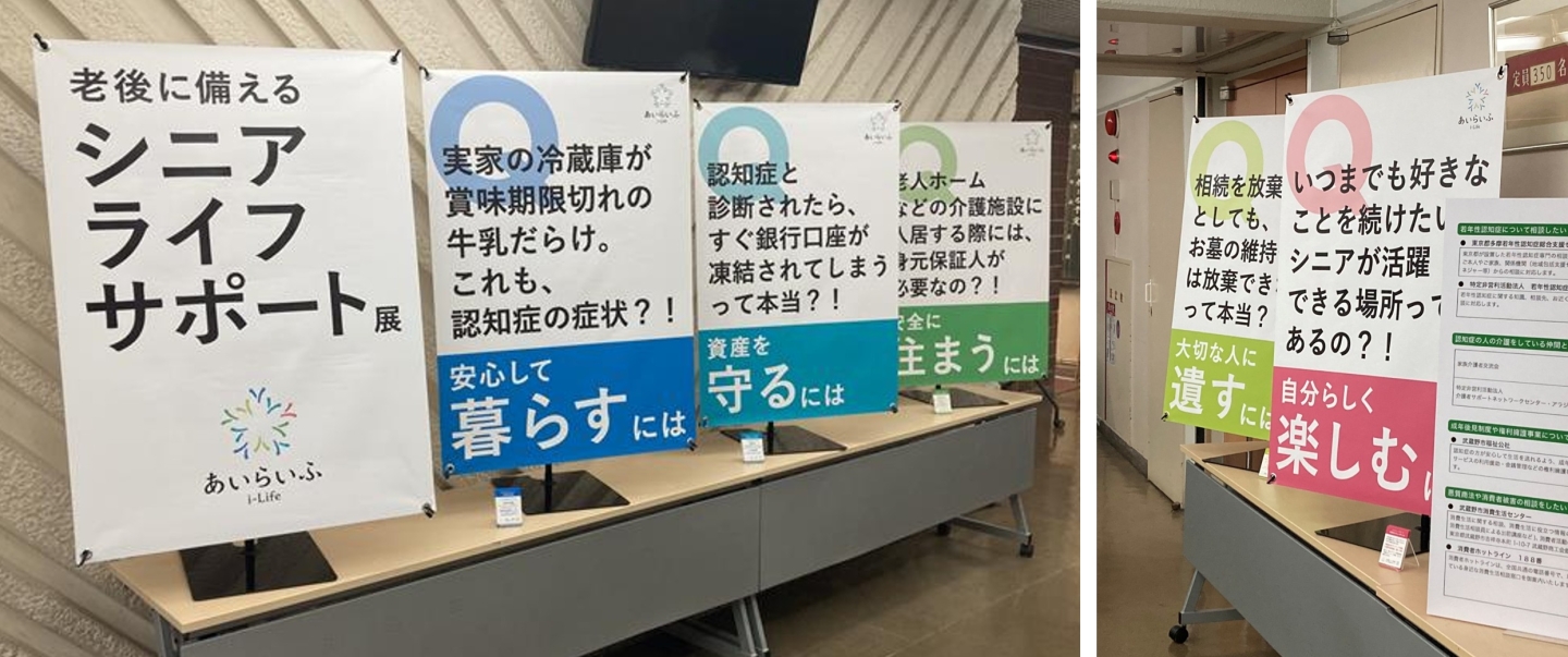 あいらいふではその取り組みの一環として、2025年9月20日(土)、武蔵野公会堂ロビーにおいて「老後に備える『シニアライフサポート展』」を実施しました。