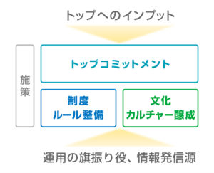 2023年6月よりユカリアグループ社員により構成されるDEIタスクフォース(現:DEIプロジェクト)を設置し、「トップコミットメント」の下、「制度・ルール整備」「文化・カルチャー醸成」の両輪で施策の検討・実施を継続しています。